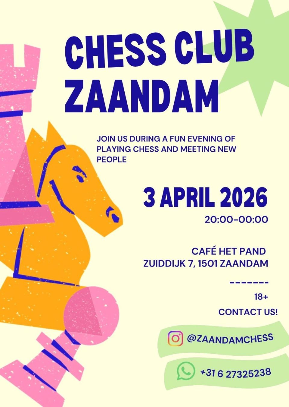 Op vrijdag 3 april 2026 van 20:00 tot 00:00 organiseren wij onze tweede schaakavond, opnieuw in Het Pand.