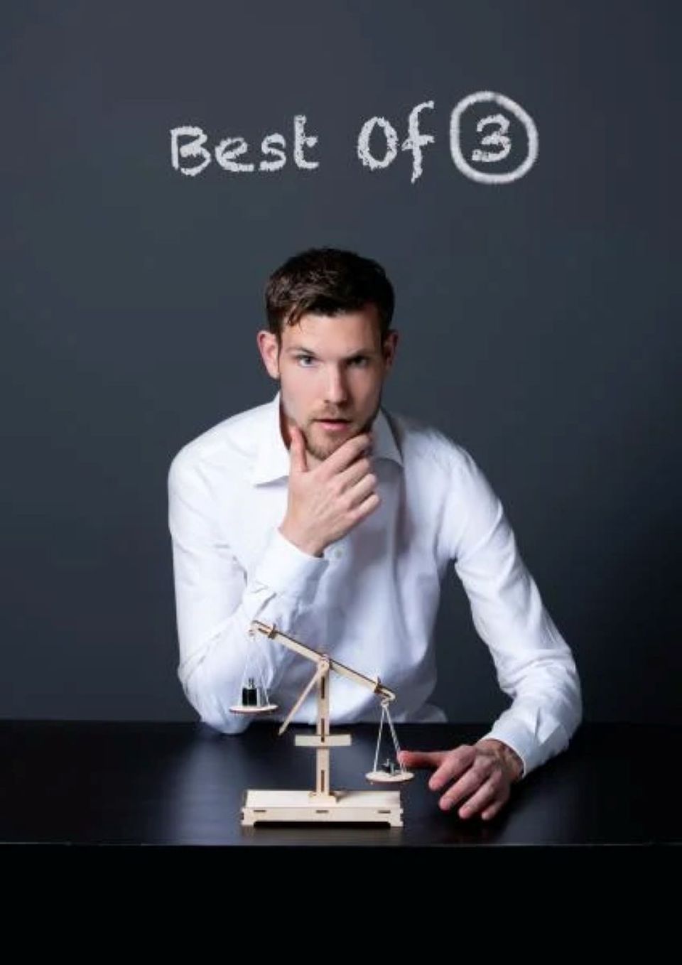 Cabaretier is hij. En wiskundige. Tobi Kooiman. Hij speelt met logica, tackelt levensvragen en alledaagse kwesties en neemt op de koop toe dat het publiek daar ongegeneerd doorheen lacht. Hij won er de publieksprijs mee bij Cameretten, en zijn avondvullende debuut, ‘Best Of’, was een verfrissende wind met hits in overvloed, aldus cabaret.nl (★★★★★). De show was te zien bij BNNVARA en staat nu op Spotify en NPO Start.
