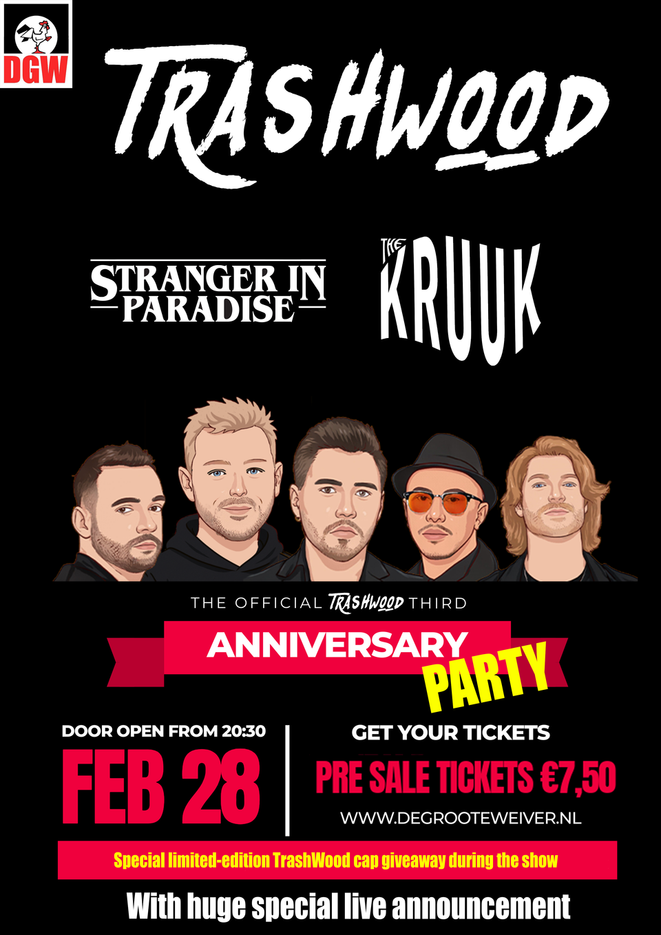 Samen met twee van onze favoriete bands, The Kruuk en Stranger in Paradise, maken we er een legendarische avond van. Bovendien komt TrashWood met een hele grote aankondiging die je absoluut niet wilt missen.