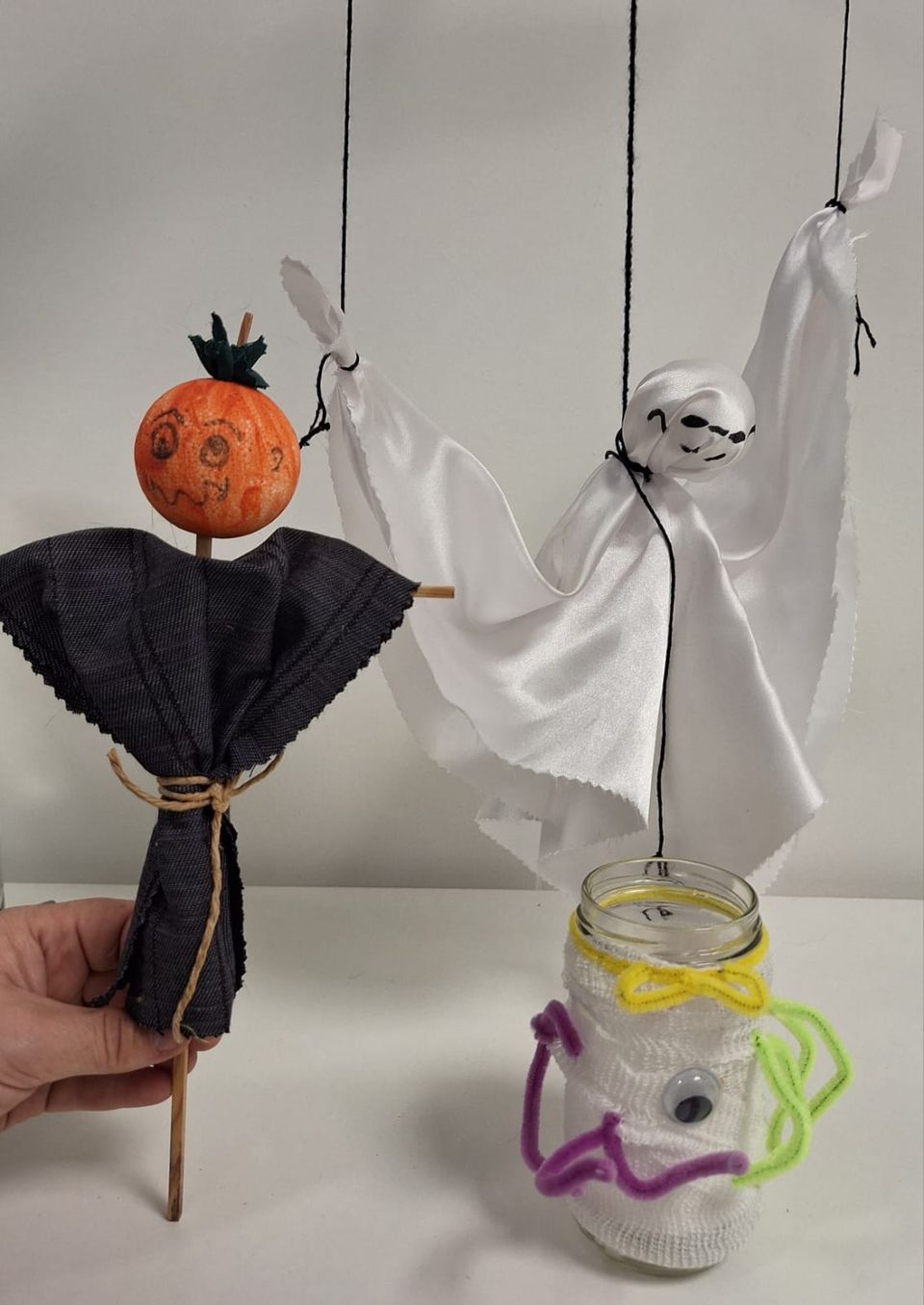 In het grote lokaal kun je leuke Halloween-dingen knutselen. Onze superhandige vrijwilligers helpen je daarbij en er zijn genoeg materialen die je kunt gebruiken om prachtige Mummie-lichtjes, spookmobielen en een vogelverschrikker te maken. Ook zijn er maskers die je kunt inkleuren en daarna kunt opzetten.