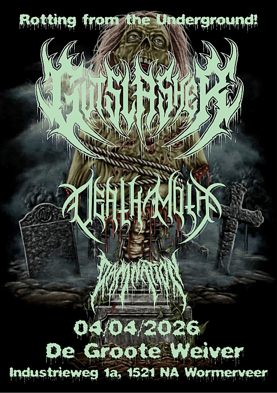 Death Metal night in De Groote Weiver in Wormerveer! De ondergrond komt samen in het duister om Death Metal weer op de kaart te zetten in de krochten van Noord Holland!