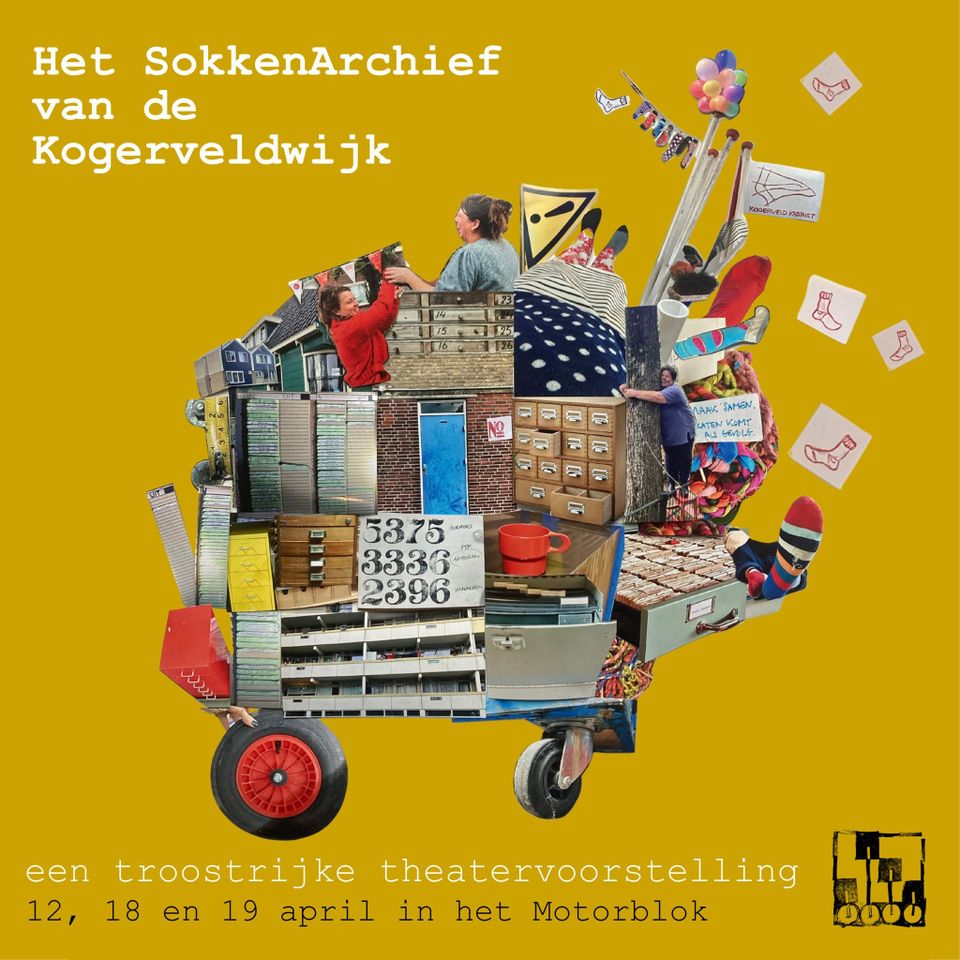 In de theaterzaal van Het Motorblok aan de Oostzijde 381, te Zaandam is binnenkort Het Kogerveld Kabinet te zien: een voorstelling die midden in de wijk ontstaat en waarin bewoners, verhalen en sokken een hoofdrol spelen. De voorstelling is geschikt voor groot en klein, herkenbaar, gemaakt met wijkbewoners en toegankelijk voor iedereen. Voorstelling Zaanse theatermakers Kim Zonneveld, Heleen van Wiechen en kunstenaar Saskia van der Sluis maken samen met buren Het SokkenArchief van de Kogerveldwijk. Met sokken. Op z’n Zaans: ‘onke’ sokken om precies te zijn: eenling of eenzame sokken. Die sokken waar de ander van weg is… Tijdens deze voorstelling verandert de theaterzaal van Het Motorblok in een vervreemdend archief waar de gestippelde kous naast de rode sportsok ligt, waar de gebreide sok prachtige gaten heeft en de babysok glitters. Waar bevlogen archivarissen je meenemen in deze troostrijke bewaarplaats, waar muziek klinkt en verhalen tot leven komen. Het Kogerveld Kabinet Dit theatrale project brengt persoonlijke verhalen samen en geeft ze een podium. In Het Motorblok komen de ervaringen, humor en verbeelding samen in een intieme setting. De voorstelling nodigt stadgenoten uit om elkaar te ontmoeten en anders naar hun omgeving te kijken.
