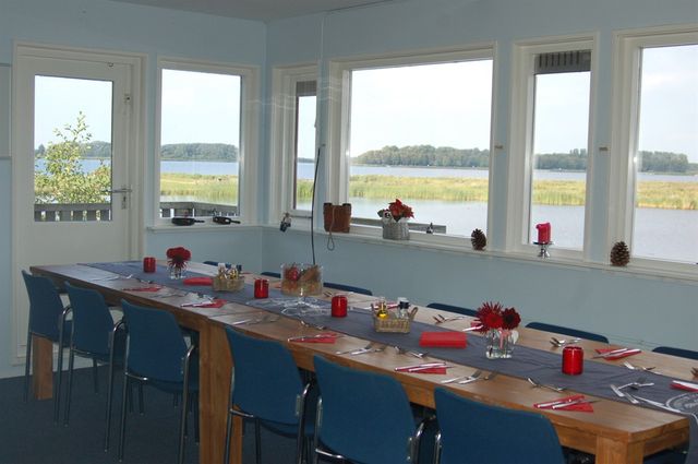 Op de eerste verdieping vindt je een vergaderruimte met uitzicht over de Stootersplas. Een inspirerende plek voor vergaderingen, workshops of teambuilding sessies. Je kunt naar wens in de pauze gaan varen of een natuurwandeling maken. Lunch en diner worden verzorgd.