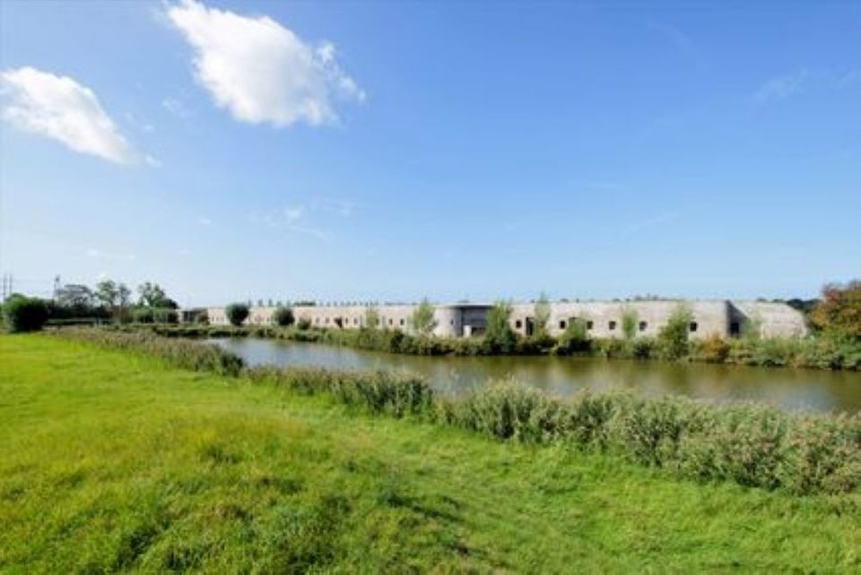 Het kruitmagazijn bij de Stenen Paal maakt onderdeel uit van de voormalige Stelling van Amsterdam, de kringstelling van permanente verdedigingsbouw rond de hoofdstad, die tevens gold als Nationaal Reduit en werd aangelegd tussen 1880 en 1920 door het Departement van Oorlog. Het munitiemagazijn uit 1895 is aan de oostzijde tegen de dijk geplaatst, waarbij deze meteen als zware frontdekking van het gebouw dienst deed. Het rechthoekig bouwvlak werd onderheid met houten palen, van roosterwerk voorzien en vervolgens op een zwaar bed van ongewapend steenbeslag. De doosvormige bouwmassa bevat vier naast elkaar geplaatste binnenruimten en een frontgang. De wachterswoning van één bouwlaag en een kapverdieping werd op rechthoekig plattegrond in baksteen opgetrokken en gedekt door een met rode Hollandse pannen belegd zadeldak.